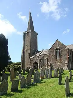 Ermington appears in the Domesday Book as a royal manor. By 1270 the manor house of Strashleigh was the home of the Strashleigh family,[5] also written Stretchleigh, until the heiress Christina Stretchleigh in 1560 married Sir Christopher Chudleigh, grandfather of the adventurer Sir John Chudleigh.[6] Nearby Strode was inhabited by the Strode family from 1238 and probably earlier. Although, since the 15th century, their principal residence has been in Plympton. In the 14th century, its church, named after Saint Peter, was constructed and was later enlarged in the 15th century.[7]