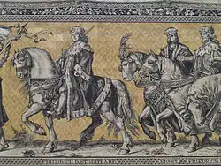 Frederick I, Elector of Saxony (1381–1428), Ernest, Elector of Saxony (1464–1486) and Frederick II, Elector of Saxony (1428–1464); Fürstenzug, Dresden, Germany