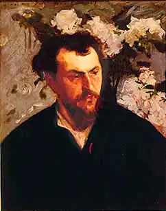 In 1883 Duez moved into a studio on boulevard Berthier, close to that of John Singer Sargent on the same street. Singer painted portraits of Duez and his wife in 1884–6.[1] His wife, Amélie Duez, was a well-known amateur singer, and was the first to perform Gabriel Fauré's newly composed songs "Mandoline" and "En sourdine" (the first two songs of Cinq mélodies "de Venise"), while Fauré and the couple were staying as guests of the Princesse de Polignac in Venice in 1891.[7] Duez's circle also included the painters Paul-Albert Besnard, Jacques-Émile Blanche and Roger-Joseph Jourdain.[1]