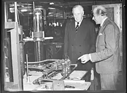 ![]() Ernest Fisk (right) with Governor-General Gowrie during a factory tour in 1939 | |