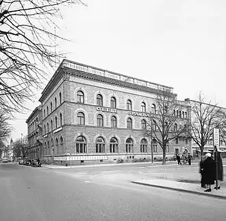 Ernst Victor Engwall was able to fund the family's projects through the bank. After Ernst became vice-chairman, the Engwall family saw rapid growth, financing Borgarskolan,[3] as well as the construction of Gevaliapalatset.[4]