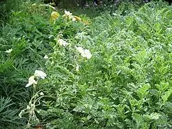 | The silvery-green leaves are finely divided and provide winter interest.[1][2] | |