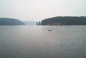 Esnagi Lake is a large V-shaped lake in the Unorganized North part of Algoma District, Ontario, Canada.[1][2][3] Part of the Great Lakes Basin, it is about 45 kilometres (28 mi) long and 5.0 kilometres (3.1 mi) wide and lies at an elevation of 344 metres (1,129 ft), with the "V" on its side and the apex facing west. The primary inflows are the Magpie River from Mosambik Lake at the north end of the lake, Tripoli Creek on the west side, and other unnamed creeks. The primary outflow is also the Magpie River, which flows downstream from the south end of the lake at the east switch of the siding at Swanson on the Canadian Pacific Railway transcontinental mainline, and eventually into Lake Superior.