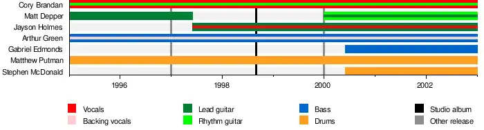 • Brandan stated in an interview the final lineup consisted of eight people, with two guitarists, two bassists, two drummers and Brandan and Holmes on vocals.[5]