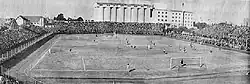 The stadium during a football match, c. 1940. The grandstand at background had been acquired to Club Boca Juniors some years earlier