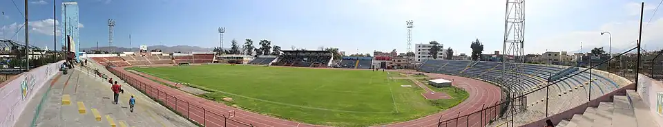 The Estadio Melgar[1] is a multi-use stadium in Arequipa, Peru. Its primary use is to host football games for Peruvian First Division team FBC Melgar and Peruvian Segunda Division team Sportivo Huracán and Copa Perú teams Senati FBC, FBC Aurora and FBC White Star. The stadium has a seating capacity of 15,000 and includes a running track for track and field events. It was named after Mariano Melgar, a Peruvian patriot and poet from Arequipa. It is also known as "Estadio de Cuarto Centenario" (Fourth Centennial Stadium) since it is in a neighborhood which was built in celebration of the fourth centennial of the Spanish foundation of Arequipa. The stadium was a venue for the 2001 South American Under 17 Football Championship in Peru.