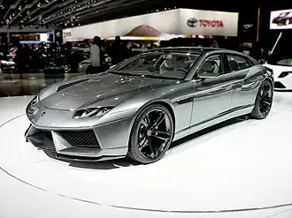 The Estoque was introduced at the 2008 Paris Motor Show.[4][5][6] The Estoque is the first front-engine vehicle to be introduced by Lamborghini since the LM002 utility vehicle. It was described as a "concept for a $230,000 four-door sedan".[7] It had a 5.2 litre V10 engine shared with the Gallardo, although there had been speculation that this would be replaced by a V12, V8, or possibly even a hybrid or a turbo-diesel engine, as suggested by the then Lamborghini Brand Director, Manfred Fitzgerald.[5]