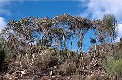 The South Australian grey mallee grows on slopes and between rocks in open woodland, mainly in the Flinders Ranges but with outliers to the south near Yunta and Quorn.[3][6]