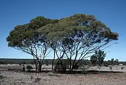 Eucalyptus lucasii, commonly known as Barlee box,[2] is a species of mallee that is endemic to central Western Australia. It has smooth bark, sometimes rough near the base, with broadly lance-shaped adult leaves, flower buds mostly in groups of between seven and eleven on a branched peduncle, creamy white flowers and cup-shaped to cylindrical or conical fruit.