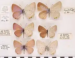 - ^ a b R. K., Varshney; Smetacek, Peter (2015). A Synoptic Catalogue of the Butterflies of India. New Delhi: Butterfly Research Centre, Bhimtal & Indinov Publishing, New Delhi. p. 143. doi:10.13140/RG.2.1.3966.2164. ISBN 978-81-929826-4-9.