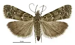 6. ^ Meyrick, E. (1885). "Descriptions of New Zealand Microlepidoptera. IV. Scopariidae". Transactions and Proceedings of the New Zealand Institute. 17: 68–120. Retrieved 26 January 2018.Public Domain This article incorporates text from this source, which is in the public domain.
