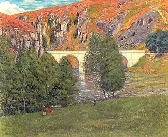 He made his first, brief visit to Crozant in 1887. A longer stay followed in 1891. By 1905, he and his wife, Marcelle, had built a home there, called "La Roca", where they stayed every summer. It soon became a gathering point for the artists' colony. His best friends there included the poet, Maurice Rollinat, and the Impressionist painter Armand Guillaumin, who was a major influence on his middle-period style. Later, he would be more influenced by Cézanne.[4] He was regular exhibitor at the Salon d'Automne.
