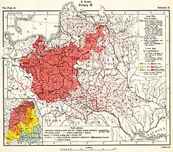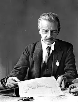 In 1909 Romer went to Switzerland, to study Alpine glaciers.[3] Next year, he traveled to Asia, and in 1913 to Alaska, to the Saint Elias Mountains (where one of glaciers has been named after him). In 1916, while in Vienna, Romer started work on the Great Statistical and Geographical Atlas of Poland. This atlas, published in Vienna in 1916, was crucial to establishing borders of the Second Polish Republic. He was a member of the Polish delegation at the Paris Peace Conference, 1919, helping to draw the western border of Poland. His Ukrainian rival, and the father of Ukrainian geography, Stepan Rudnytsky, was a fellow student of Albrecht Penck in Vienna.[4] The second edition of his atlas was published in Lwów and Warsaw in 1921.