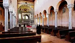 The most striking feature of the basilica are its mosaics, mostly with gold grounds, dating from the 6th century.[2]