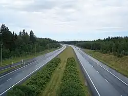 European route E12 is a road that is part of the International E-road network. It begins in Mo i Rana, Norway, transverses Sweden and ends in Helsinki, Finland, with a ferry line between Sweden and Finland. The part within Finland is Finnish national highway 3. The road is about 910 kilometres (570 miles) in length.