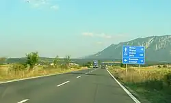 From Botevgrad to Sofia, E79 joins Hemus motorway (A2). At the Bulgarian capital Sofia it follows Sofia Northern Bypass motorway and then Sofia Ring Road. From Sofia all the way to the border with Greece, E79 joins Struma motorway (A3) with the exception of the Kresna Gorge pass, which still use the old 2-lane standard road. The Bulgarian Traffic law allows speeds up to 140 km/h (87 mph) on motorways unless otherwise stated.