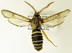 Eusphecia melanocephala is a moth of the family Sesiidae. It is found in central, eastern and northern Europe and parts of western Europe as well as Asia. The range extends from the Pyrenees, through southern France and central Europe into Asia. In the north, it can be found up to Fennoscandia and in the south down to the southern edge of the Alps and the northern Balkans.