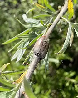 Euura exiguae is a species of gall-inducing North American sawfly.[1] E. exiguae, one of several Euura species that induce integral stem galls on willow species, uses narrow leaf willow (Salix exigua) and dusky willow (Salix melanopsis) as a host.[2]