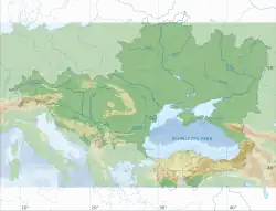The only connection between the open ocean and the Black Sea is the Bosphorus Strait, through which dense Mediterranean waters are imported.[43] Subsequently, numerous rivers, such as the Danube, Don, Dnieper, and Dniester, drain fresh water into the Black Sea, which floats on top of the more dense Mediterranean water, causing a strong, stratified water column.[42] This stratification is maintained by a strong pycnocline which restricts ventilation of deep waters and results in an intermediate layer called the chemocline, a sharp boundary separating oxic surface waters from anoxic bottom waters usually between 50m and 100m depth,[44] with interannual variation attributed to large scale changes in temperature.[43] Well-mixed, oxic conditions exist above the chemocline and sulfidic conditions are dominant below.[43] Surface oxygen and deep water sulfide do not overlap via vertical mixing,[45] but horizontal entrainment of oxygenated waters and vertical mixing of oxidized manganese into sulfidic waters may occur near the Bosphorus Strait inlet.[43] Manganese and iron oxides likely oxidize hydrogen sulfide near the chemocline, resulting in the decrease in H2S concentrations as one approaches the chemocline from below.