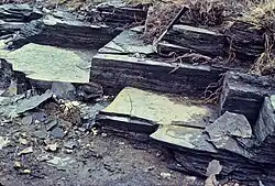 Black shales are organic rich, microlaminated sedimentary rocks often associated with bottom water anoxia.[18] This is because anoxia slows the degradation of organic matter, allowing for greater burial in the sediments. Other evidence for anoxic burial of black shale includes the lack of bioturbation, meaning that there were no organisms burrowing into the sediment because there was no oxygen for respiration.[4] There must also be a source of organic matter for burial, generally from production near the oxic surface. Many papers discussing ancient euxinic events use the presence of black shale as a preliminary proxy for anoxic bottom waters, but their presence does not in and of itself indicate euxinia or even strong anoxia.[18] Generally geochemical testing is needed to provide better evidence for conditions.[4][18]