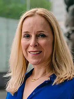Eva De Bleeker (born 2 August 1974) is a Belgian politician serving as leader of the Open Flemish Liberals and Democrats since 2024.[1] She has been a member of the Flemish Parliament since 2024.[2] From 2020 to 2022, she served as secretary of state for budget and consumer protection.[3] She served as schepen of Hoeilaart from 2013 to 2020 and from February to December 2024.[4][5]