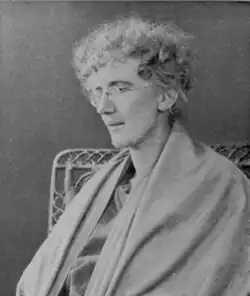 Meeting political activist Roper in Italy in 1896, where Gore-Booth was sent to recover from respiratory ailments, was a deciding factor in Gore-Booth's active involvement in women's rights of the suffrage movement.[4] The two women formed a strong attachment during the weeks spent together at the villa of writer George MacDonald and his wife in Bordighera which led to a partnership, privately and professionally, until Eva's death in June 1926.[13] How intimate her relations were with Roper is controversially discussed; however, letters and poems Gore-Booth dedicated to Roper suggest a romantic love between the two women.[14] One of those poems appears in a collection of her poetic work "The Travellers, To E.G.R" which was published by Roper in 1929 and in which she uses analogies of music and song to express how deeply she was struck by her partner's personality and charisma.[15][16]