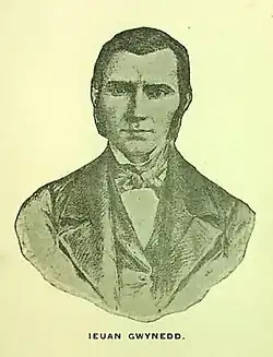 1. ^ Frank Price Jones (1959). "Jones (Evan (Ieuan Gwynedd; 1820-1852), Independent minister and journalist". Dictionary of Welsh Biography. National Library of Wales. Retrieved 23 November 2021.