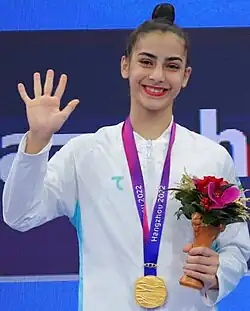3. ^ "Бадиий гимнастикачиларимиз Осиё чемпионатини 17 та медаль билан якунлашди" [Our rhythmic gymnasts finished the Asian Championship with 17 medals]. National Olympic Committee of the Republic of Uzbekistan (in Russian). 26 June 2022. Retrieved 26 October 2023.