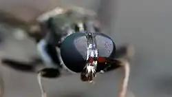 Stratiomyidae is a family of detrivores.[15] Exaireta spinigera has been studied to see its effectiveness as a bioconvertor of food waste as the larvae consumes detritus.[15] It is assumed that pollen and nectar may be a potential food source for adults.[4]