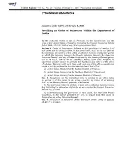 Executive Order 13775 is the eleventh executive order signed by U.S. President Donald Trump. Signed on February 9, 2017, the order changes the line of succession for the Department of Justice (DOJ). This order specifically reverses changes made to the DOJ line of succession that former President Barack Obama made in executive order 13762.
