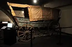 Beginning in 1913, Meeker began to plan his role in the 1915 Panama-Pacific Exposition in San Francisco. He had donated his wagon and oxen to a park in Tacoma: when officials there expressed concern about the cost of building a proper pavilion for them, Meeker reclaimed them and set off with them to California. Deeming Dandy unfit for the road, Meeker had him slaughtered in Portland in June 1914 and had the hide shipped back to Tacoma for taxidermy; in November, the same fate met Dave in California. Meeker's wagon was exhibited at the Exposition in San Francisco. His tales of the Oregon Trail became one of the star attractions of the Exposition. Nevertheless, he quarreled with the administrators of the Washington State Building, feeling that it should be open on Sundays, when the largest crowds came to the grounds. On his return, the oxen and wagon were mounted as an exhibit at the Washington State History Museum until it closed for a move to new premises in 1995. The wagon was then deemed too fragile for display.[93][94][95]
