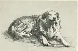 Although Meeker had not had a dog in his wagon in 1852, he knew that people liked them, and sought to add one to his crew.[63] Jim, a large, friendly collie who became an expedition member and Meeker's companion for the next six years, had belonged to one of Meeker's neighbors, a Mr. James. Meeker was impressed by the way Jim drove James' chickens out of the area where the family grew berries, by moving slowly. Five dollars to one of James' children secured the purchase.[64] Some of Meeker's friends tried to talk him out of the trip; one local minister warned against this "impracticable project", stating that it was "cruel to let this aged man start on this journey only to perish by exposure in the mountains".[65]