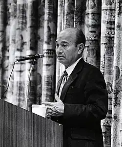 ![]() Ezra Solomon speaking at Georgia Tech 1979 | |