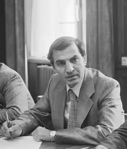 The perpetrators were Hatem Husni and Kayad Assad who were the members of the Black June, part of the Abu Nidal Organization, a revolutionary Palestinian group.[11][12] They were university students in France and were both Jordanians of Palestinian origin.[6] Husni and Assad were arrested immediately after the murder.[8] They were sentenced to fifteen years in prison in March 1980.[1] However, they were released from prison in 1986 and deported from France as a result of the negotiations between the government of France and Abu Nidal Organization.[13] Through the deal the terrorist attacks of the Abu Nidal Organization in France were terminated.[11][14] Following their release from prison Hatem Husni and Kayad Assad met with Abu Nidal, leader of the Abu Nidal Organization, at an undisclosed location.[15]
