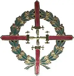 The Cruz Laureada de San Fernando (Laureate Cross of Saint Ferdinand) is the highest military decoration awarded by the Spanish government. It is bestowed on a member of the Spanish armed forces who distinguishes himself during combat. It is Spain's equivalent to the American Medal of Honor.[2]