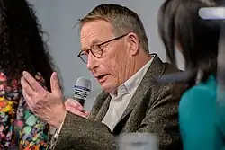 He was awarded numerous German literary prizes, including the Fontane Prize of the City of Neuruppin in 2004,[10] the Joseph Breitbach Prize,[11] the Georg Büchner Prize in 2011,[1][12][13] and the Critics Prize.[14] He was a member of the Freie Akademie der Künste Hamburg, the Deutsche Akademie für Sprache und Dichtung[7] and the Academy of Arts, Berlin.[15] In 2022, he left the PEN Centre Germany after 50 years of membership.[1][16] Delius received the Order of Merit of the Federal Republic of Germany in 2017.[9]
