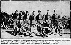 Among the victorious countries of World War I, the Inter-Allied Games were organized in 1919 in Paris, which also included a football tournament, with the Greek team to staff four players of APO Goudi: M. Isaias, Leon. Tragalos, G. Protopoulos and Vr. Branopoulos.[5] With the establishment of Athens Football Clubs Association, they participate in the Athenian championship with his greatest successes the championships of 1932 and 1933. He also took 2nd place in 1928 when he lost in the final to Atromitos. Through the Athens championship Goudi participated in the National category for 2 years, in 1934 occupying the 5th place, and in 1935 occupying the 6th place. He also undertook innovative initiatives such as the organization of championships between the schools of the area, etc.