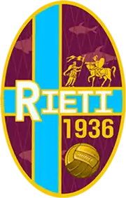 In 1996, when the club changed its name to FC Rieti , the crest became simply the city crest accompanied by the words "Football Club Rieti".[3] The crest was modified by inserting the city shield in an oval with an amaranth-blue striped background, with the "FC R" above the city shield and the year of the re-foundation "1996" below it.[2] In 2005, FC Rieti promoted to Serie C2, the year "1996" was replaced with "2005" to memorial the promotion.