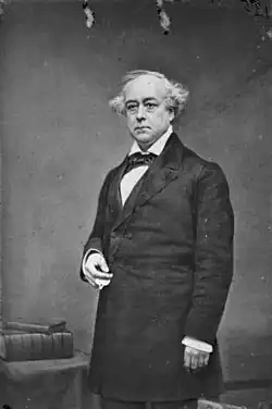 He died at his residence in New York City June 26, 1870.[6] Upon hearing the news, court was adjourned for the day[38] and he was honored by the New York Bar Association.[39] After a funeral at Grace Church in New York,[40] he was buried at the Green-Wood Cemetery in Brooklyn.[1] His estate was worth over $4,000,000 upon his death, with personal property totaling $1,230,767.96,[26] and around $1,300,000 in bonds for Wabash Railroad.[27] According to his will, his estate was split up amongst his sons, Gen. William Cutting, Hayward Cutting, his two surviving sons, and Mrs. Cutting, the widow of his son Francis who predeceased him.[26] After allegations of misdeeds,[41][42][43] his son was excused as executor,[44] and his estate was finally settled.[27]