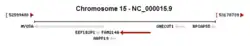 The FAM214A gene is located on the negative DNA strand (see Sense (molecular biology)) of chromosome 15 between position 52,873,514 and 53,002,014; thus making the gene 97,303 base pairs (bp) long.[5][8][9] FAM214A has been previously labeled with two other aliases, known as KIAA1370 and FLJ10980.[5] The FAM214A gene is predicted to contain 12 exons which comprise the final 4231 bp mRNA transcript after transcription has occurred.[10] It is this mRNA product that is then translated into the final FAM214A protein with the help of the promoter sequence and transcription factors. The promoter for the FAM214A mRNA sequence was predicted and analyzed by the El Dorado program on Genomatix.[11] This promoter is 601 base pairs long and spans a portion of the 5' UTR.[11]
