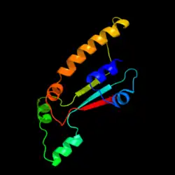 This protein most likely does not undergo a significant number of post-translational modifications due to the lack of signal peptide sequence predicted by NetNGlyc and NetOGlyc on the ExPASy web server.[24][25] This is because much of the intracellular machinery performing post-translational modifications requires the protein to move through organelles such as the endoplasmic reticulum and Golgi apparatus. Without a signal peptide sequence, the protein generally does not leave the nucleus, which was predicted by PSORT II as described above.[19]