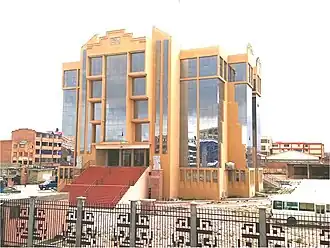 The small town quickly became a major urban center, with over 850,000 residents, largely made up of indigenous Aymara and Quechua people.[4] The Bolivian state had little presence in the city, leaving its residents without infrastructure like paved roads, waste management or telephone networks, and even without basic necessities such as running water and electricity. Three quarters of the city's residents had no access to healthcare and nearly half of them were not literate. 70% of the population earned a living from small family businesses, forming a city-wide informal economy that has only expanded since the implementation of neoliberalism.[5]