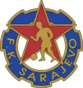 The first official club crest featured a red star, a five-pointed symbol that has historically been associated with communist ideology and was commonly used across post-WWII Yugoslavia. In 1949, the crest was modified to feature golden borders enclosing a golden silhouette of a footballer. Additionally, a blue industrial gear within a circular frame, symbolizing socialist industrialization, included the club's name.[79] In 1962, the club crest was changed for the third time. It adopted a badge-like shape, divided vertically into two sections: the outer section displayed the club's name and the communist star, while the inner section featured a football and the club's founding year. After the Bosnian War ended in 1996, the crest was slightly modified. The communist star was replaced with a Bosnian fleur-de-lis, and the design, including the lettering font, was slightly stylized. This updated crest became one of the club's most recognizable trademarks in the following years.[79] The adding of fleur-de-lis motifs to their crests was a common practice by Bosnian football clubs in the first few years after the war. The fleur-de-lis was eventually removed from the club crest in 2007, which today lacks any ideological or national symbols.[80] Despite this, the club continues to embrace its visual heritage. Yugoslav-era crests are frequently featured on official merchandise and retro collections.[81] The fleur-de-lis made a brief return in the 2013–14 season as part of the club’s third kit.[82]