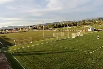The club’s current training facility, the Butmir Training Centre, is located in the municipality of Ilidža, within the Sarajevo Canton. The complex was officially opened in October 2015 and covers an area of approximately 70,000 square meters (17 acres).[90] Designed to meet modern training and infrastructure standards, the centre includes multiple natural grass and artificial turf pitches, indoor training halls, a gym, medical and physiotherapy facilities, player accommodation, a clinic, and administrative offices.[91] It serves as the primary training ground for the club’s first team, as well as for its youth academy, B team and women’s team.[92]