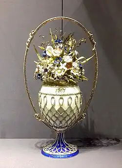 38. ^ "1903 Kelch Bonbonnière Egg". www.wintraecken.nl. Mieks Fabergé Eggs. 3 April 2016. Retrieved 2 March 2025.