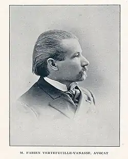 Fabien Vanasse dit Vertefeuille (November 6, 1850 – December 3, 1936) was a journalist, lawyer and political figure in Quebec, Canada. He represented Yamaska in the House of Commons of Canada from 1879 to 1891 as a Conservative Party of Canada member.