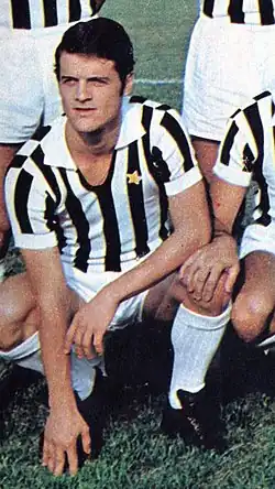 Capello was signed by Paolo Mazza, the President of SPAL, for the fee of two million lire despite interest from Milan.[5] In his second season in the youth team, he helped the club win the Italian Youth Championship and made his first-team debut in a 3–1 away defeat against Sampdoria in Serie A on 29 March 1964.[6] A talented and tactically intelligent holding midfielder, with a good positional sense, he could read the play well and was strong both in the air and in the tackle, in spite of his lack of notable height and unorthodox physique. He usually operated as a deep-lying playmaker in midfield, however, due to his outstanding technique and vision, which enabled him to orchestrate his team's attacking moves or create chances for teammates, and furthermore was an excellent passer of the ball with both feet. Going forward he was also equally effective, and possessed an eye for goal from midfield, due to his powerful and accurate shot, as well as his ability at penalty kicks, but he lacked pace, and was notorious for not being particularly hard-working.[7][8][9] With SPAL, he made four appearances for a struggling side that was relegated from Serie A.[6] After returning to the top division at the first attempt, Capello became a key player in the 1965–66 season, taking penalties and helping them avoid a swift return to Serie B. He was also called up to the Italian under-23 side alongside teammate Edoardo Reja despite still being a teenager.[10] However, injury to his left knee restricted him to just 16 appearances the following season.[11]