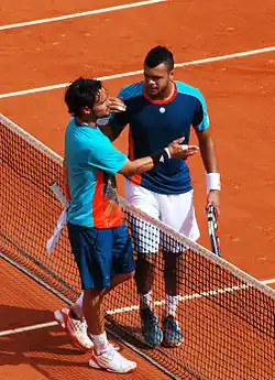 In 2011 Fognini achieved a number of breakthroughs. He reached the quarterfinals of a Grand Slam event for the first time at the 2011 French Open. He defeated Denis Istomin in the first round and qualifier Stéphane Robert in the second. In the third round, Fognini beat Guillermo García López, the 30th seed, in four sets to advance to his first Grand Slam fourth round. Here, he made the quarterfinals in dramatic fashion as he beat Spaniard Albert Montañés in a match lasting 4 hours and 22 minutes.[9] Barely able to walk at the end, Fognini eventually prevailed and clinched the epic match 11–9 in the fifth set. After the match, he described his run at the French Open as a "little dream", maintaining that he "would love to play the next match ... even if I'm only at 50 percent".[10] He was due to face World No. 2 Novak Djokovic in the quarterfinals but, prior to the match, he announced that he had made the "difficult" decision to withdraw on doctors' advice that it would be "dangerous" to play.[9] Nonetheless, Fognini became the first Italian man in the French Open quarterfinals since 1995 and the first to reach that stage at a Grand Slam since 1998.[11] His achievement saw him rise to a then career-high singles ranking of World No. 32.