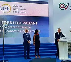 As part of Renzi Cabinet and Gentiloni Cabinet economic policy, Pagani created the "Finance for Growth" project which led to the Competitiveness Law Decree (June 2014), "Unlock Italy" Decree (August 2014), to the reform of the banking System (Investment Compact decree – January 2015), and to the Reform of Popular Banks and the Guarantee on Securitization of Bank Non Performing Loans (GACS) (February 2016).[2] Pagani has been at the heart of the implementation of government privatization plan, in particular he worked on Poste Italiane[3] IPO in October 2015 and ENAV listing in July 2016.