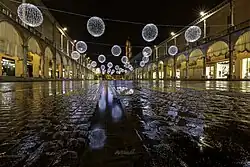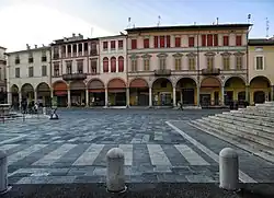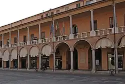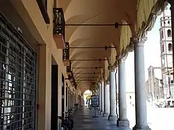 Portico of the Pagnocca at Palazzo Zauli-Naldi, built by the Naldi brothers in 1629 as an ornament to the southern end of the square and to complete the then-renovated "Cremonino" Palace from the Manfredi era.